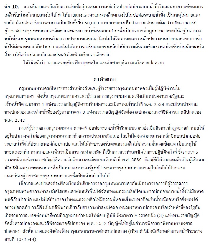 4. ความรับผิดทางแพ่ง ของเจ้าหน้าที่และหน่วยงานของรัฐ ที่ดูแลรับผิดชอบสะพาน 200 ปี เป็นไปตาม พ.ร.บ.ความรับผิดทางละเมิดของเจ้าหน้าที่ พ.ศ.2539 (หมายเหตุ : Thai Law Consult ขณะเขียนบทความเรื่องนี้ ยังไม่ทราบข้อเท็จจริงว่า หน่วยงานของรัฐที่มีหน้าที่โดยตรงในการดูแลสะพาน 200 ปีนี้ คือ เทศบาลตำบลท่าหลวง หรือ กรมทางหลวงชนบท กันแน่) จึงขอนำข้อสอบเนติบัณฑิต สมัยที่ 63 ข้อ 10 กฎหมายปกครอง มาลงไว้ เพื่อตอบคำถาม และเป็นความรู้กฎหมายสู่ประชาชนครับ