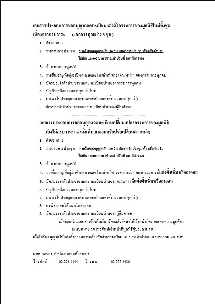 เฉพาะเดือนเมษายน 2556 พี่ตุ๊กตา ทนายณุมาพร พัฒนพงศธร น.บ.ท.64 ได้รับอีเมล์สอบถามเรื่องการจดทะเบียนมูลนิธิจากคุณพ่อของเพื่อน ถึง 2 คนด้วยกัน ท่านประสบความสำเร็จในวงการธุรกิจแล้ว ท่านชวนเพื่อนและบุคคลน่าเชื่อถือ มาเป็นกรรมการมูลนิธิ เพื่อช่วยเหลือเด็กยากจน พี่ตุ๊กตา , ทนายน้อย ปราธูป ศรีกลับ จึงเรียบเรียงบทความนี้ โดยนำมาจากเอกสารเผยแพร่ทางอินเตอร์เน็ตของเขต........ โปรดคอยอีกนิดนะคะ ทนายติดว่าความ พิมพ์ให้ไม่ทัน