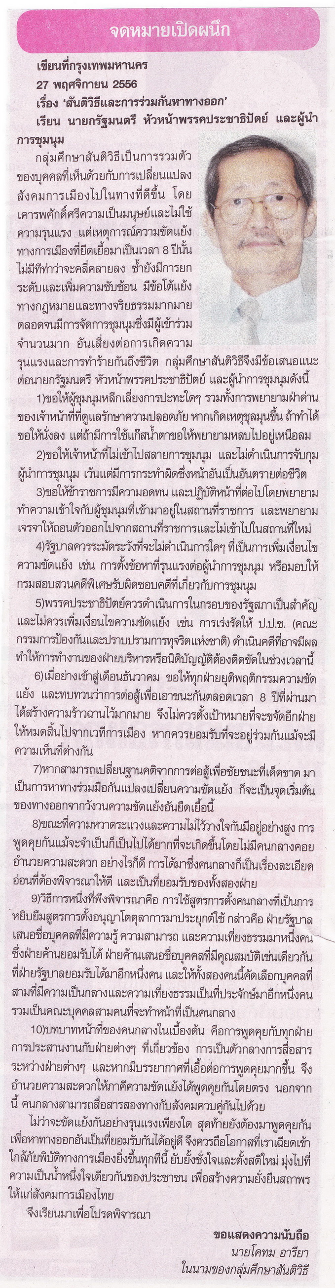 2. บทนำ มติชน วันที่ 29 พฤศจิกายน 2556 รักษาเป้าหมาย สงบสันติ